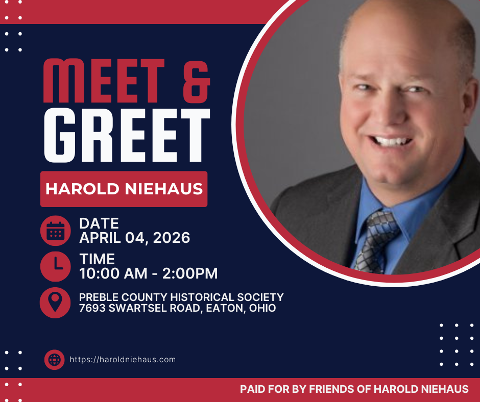 Join us for an opportunity to meet Harold Niehaus and learn more about his vision for the future of Preble County. Stop by the Preble County Historical Society on April 4th for a casual meet and greet where community members can talk with Harold, ask questions, and discuss the issues that matter most to our county.